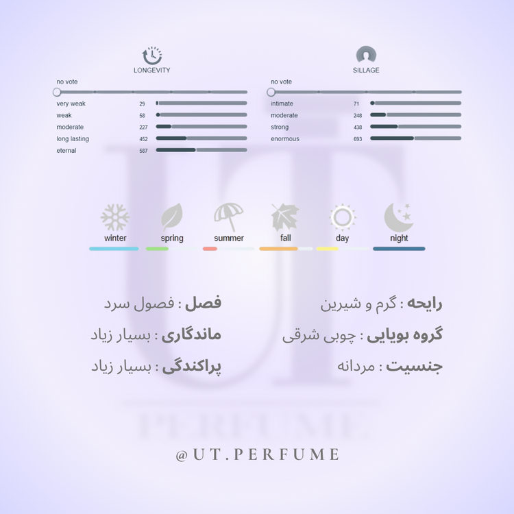در خانواده شرقی چوبی (Amber Woody) قرار دارد و طبعی گرم و شیرین دارد.