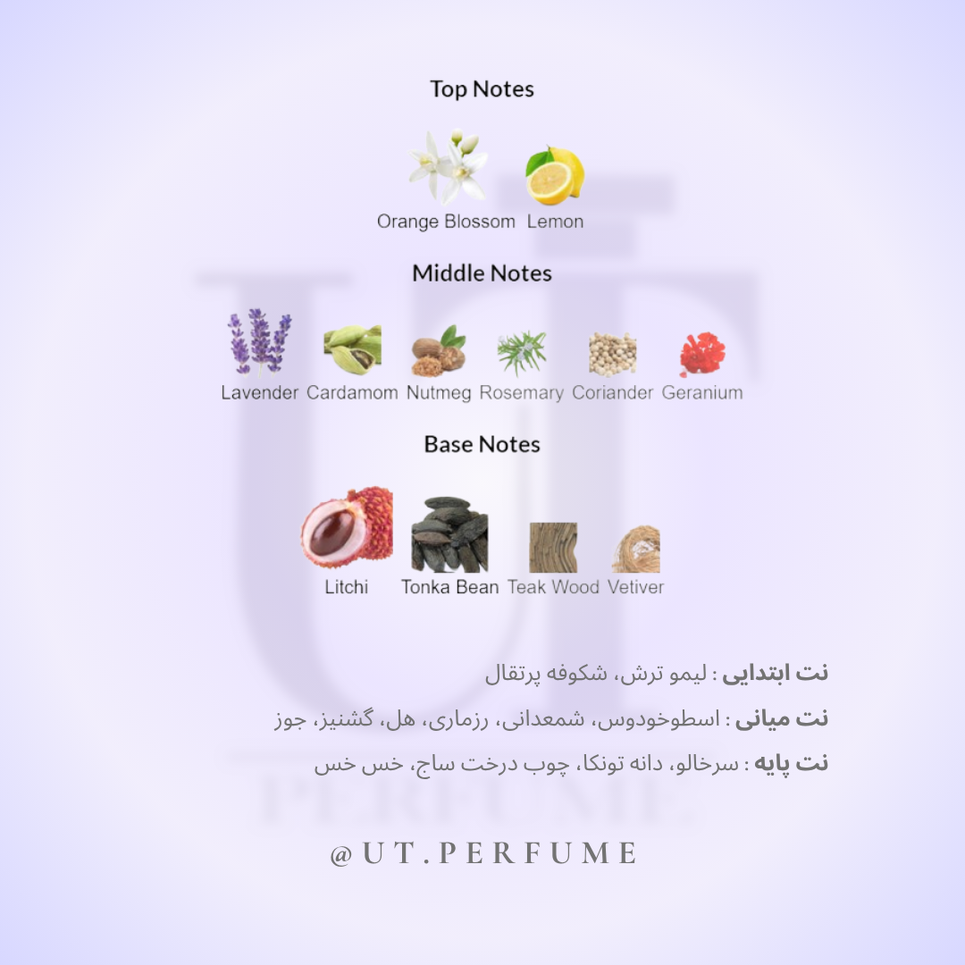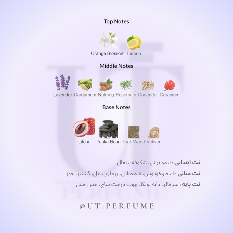 نتهای میانی: اسطوخودوس، جوز، هل، گشنیز، رزماری، شمعدانی