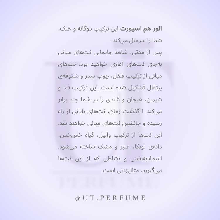 الور هوم اسپرت؛ ظرافت در حرکت الور هوم اسپرت عطری برای مردی است که عاشق حرکت، چالش