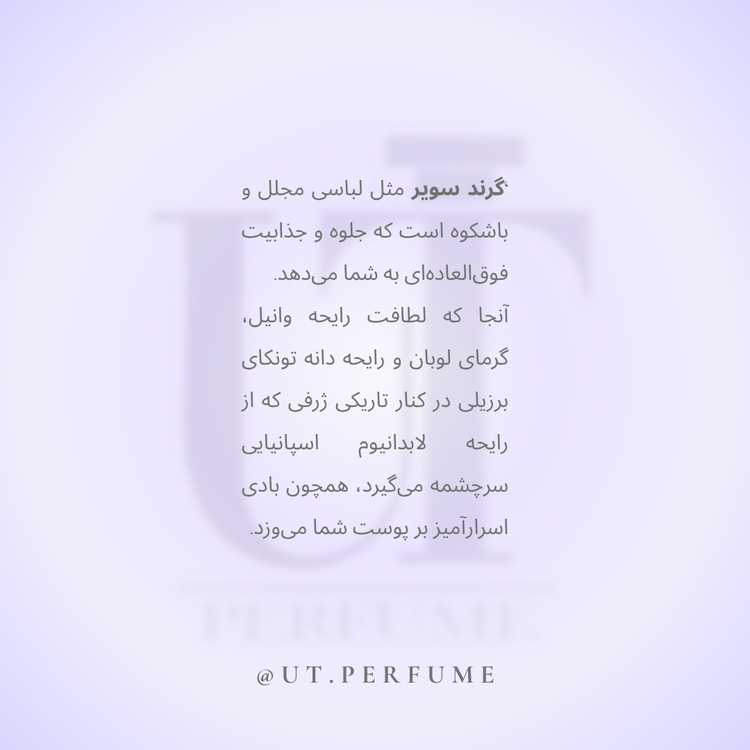 در پاریس میبرد. این عطر با رایحهای بسیار گرم، غنی و خطی از کهربا و وانیل، حسی از تجمل، راحتی و صمیمیت
