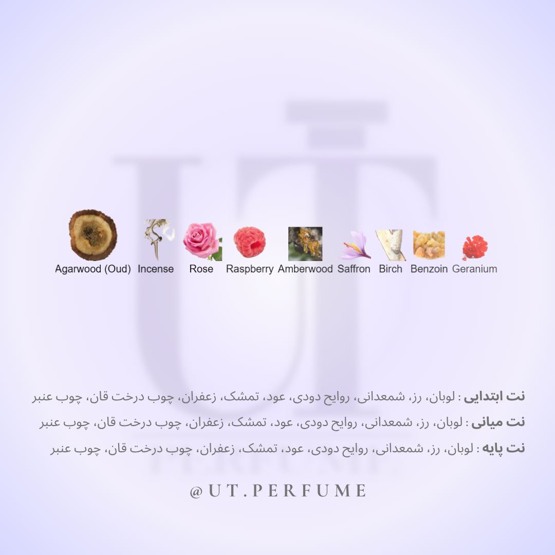 نتهای اصلی: لوبان، رز، شمعدانی، روایح دودی، عود، تمشک، زعفران، چوب درخت قان، چوب عنبر