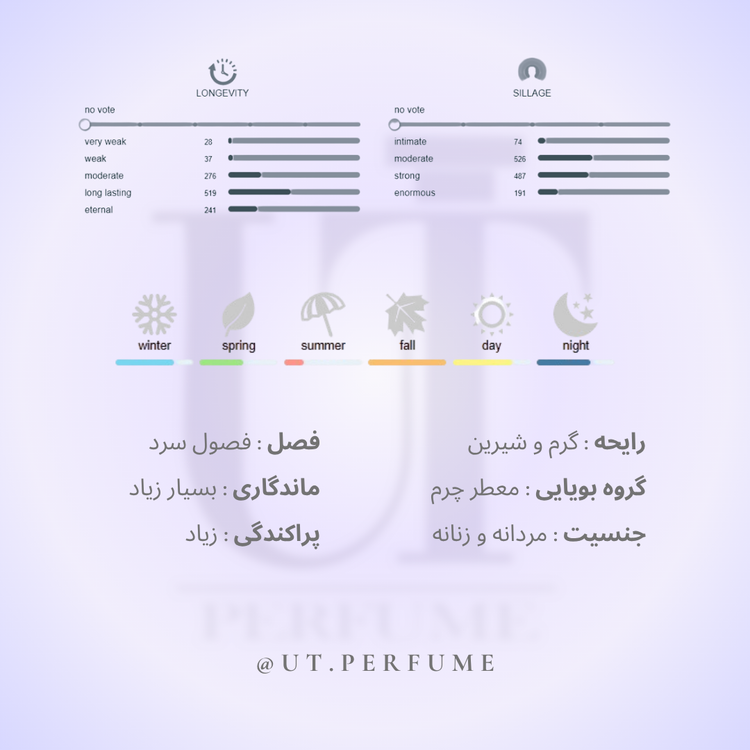 یک عطر چهارفصل عالی که به خصوص در بهار و پاییز میدرخشد. برای استفاده روزانه و موقعیتهای