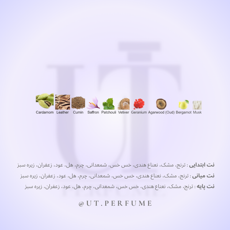 وسیع آفریقا میبرد. این عطر با ترکیبی بسیار گرم، خشک و ادویهای از هل، زعفران و چرم، رایحهای