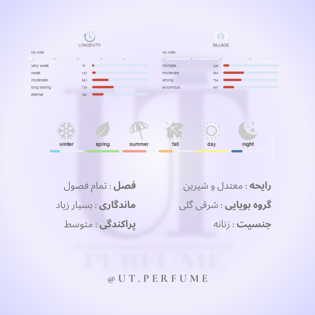 هستند. رایحهای زیبا، پیچیده و احساسی که در عین خنکی و ملایمت، عمق و ماندگاری یک عطر شرقی