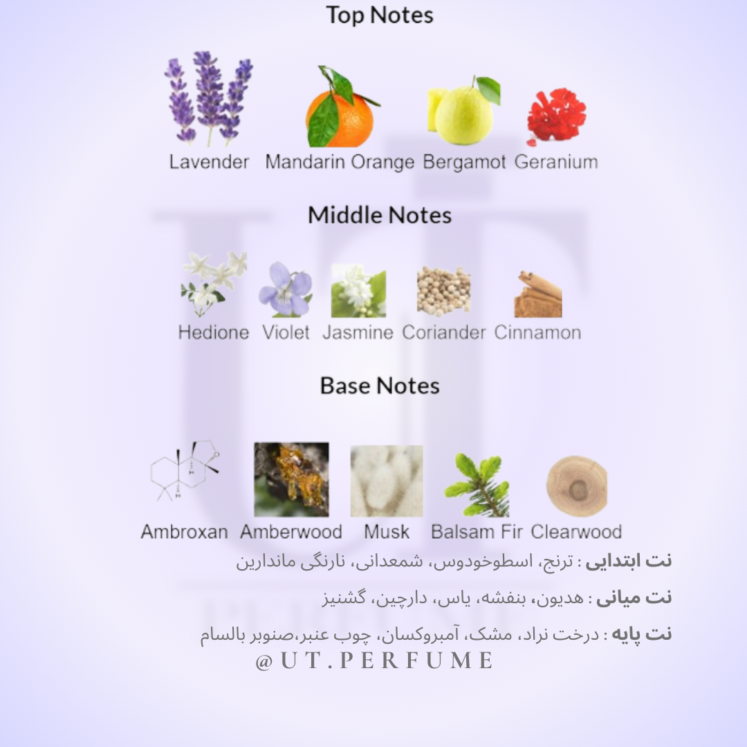 مرکبات و اسطوخودوس در کنار پایهای گرم و چوبی، عطری بسیار همهکاره، تمیز و انرژیبخش