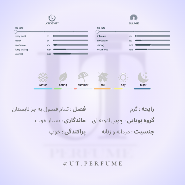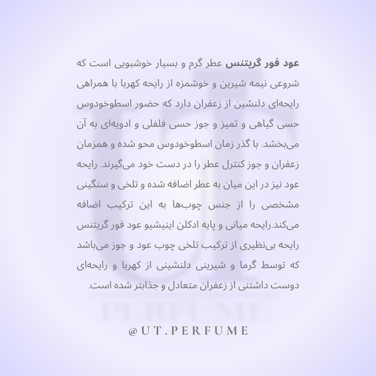 این عطر سنگین و باوقار، بهترین انتخاب برای فصلهای سرد سال (پاییز و زمستان) است. عود فور گریتنس
