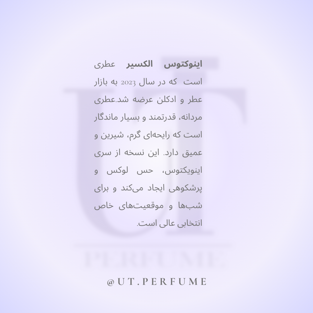 اینویکتوس الکسیر از ماندگاری بالا و پخش بوی قدرتمند برخوردار است. رایحهی آن بهسرعت اطرافیان را جذب