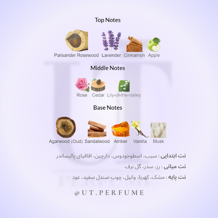 نتهای پایه: عود لائوسی، چوب صندل سفید، کهربا، وانیل، مشک