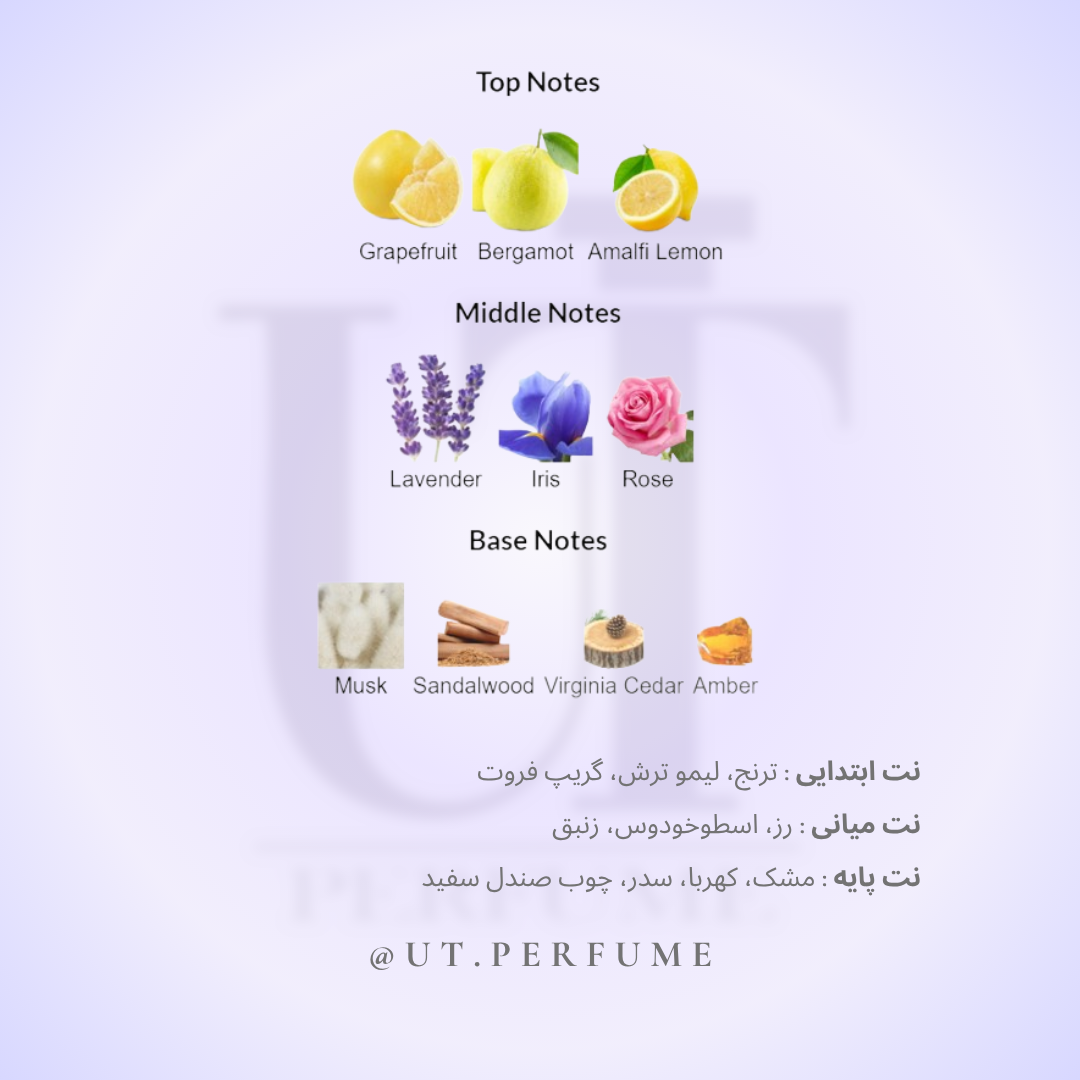 و پایانی پودری و شیک از زنبق، رایحهای بسیار تمیز، باوقار و آسمانی را خلق کرده است.