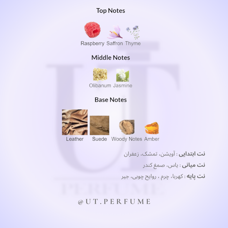 زعفران و شیرینی غیرمنتظره تمشک را ارائه میدهد. عطری برای کسانی که شخصیتی قوی و