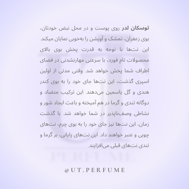 توسکان لدر؛ اصیل، قدرتمند و بیپروا تاسکان لدر تفسیری بسیار مدرن، خام و حیوانی از رایحه