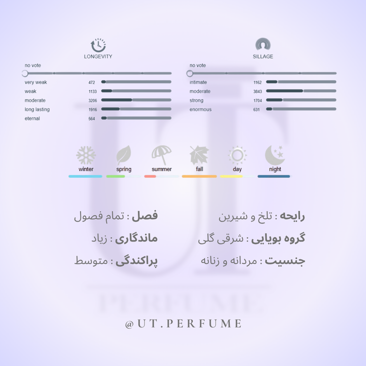 عطر در خانواده شرقی گلی (Amber Floral) قرار دارد و طبعی گرم و شیرین دارد.