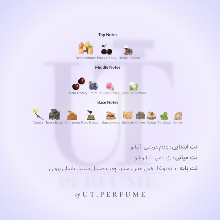 در مرز بین معصومیت و اغواگری میبرد. این عطر با رایحه بسیار طبیعی و آبدار گیلاس