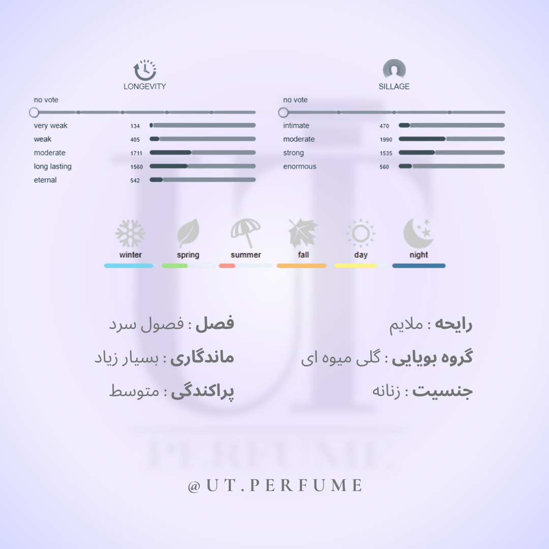 دارای ماندگاری بالا و پخش بوی بسیار قوی است.