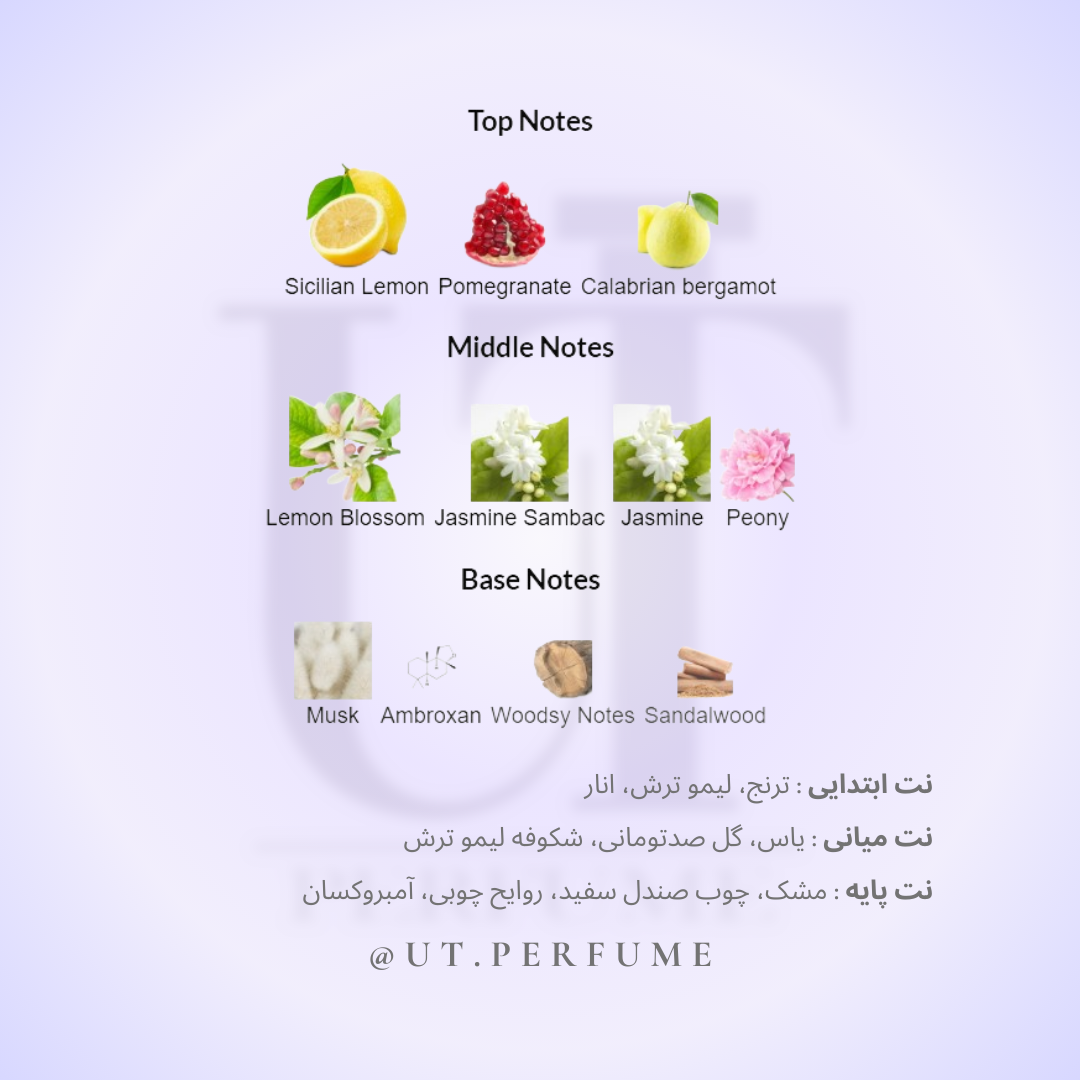 نتهای میانی: شکوفه لیمو، یاس رازقی، یاس، گل صدتومانی